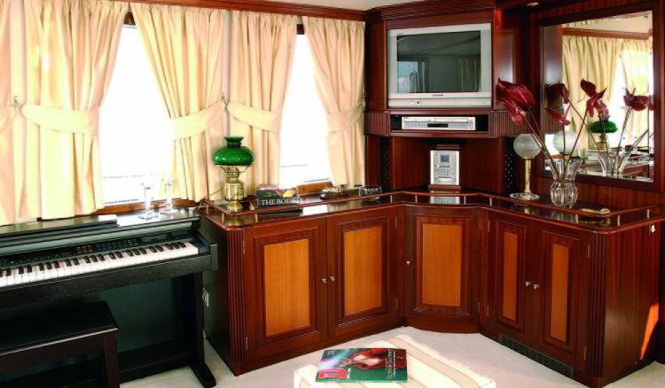 Photo printer. Laptop computer. GPS. VHF/DSC. Telephones in each cabin, salon, bridge. Three GSM lines with e-mail and fax services. One fixed cellular/GSM phone.